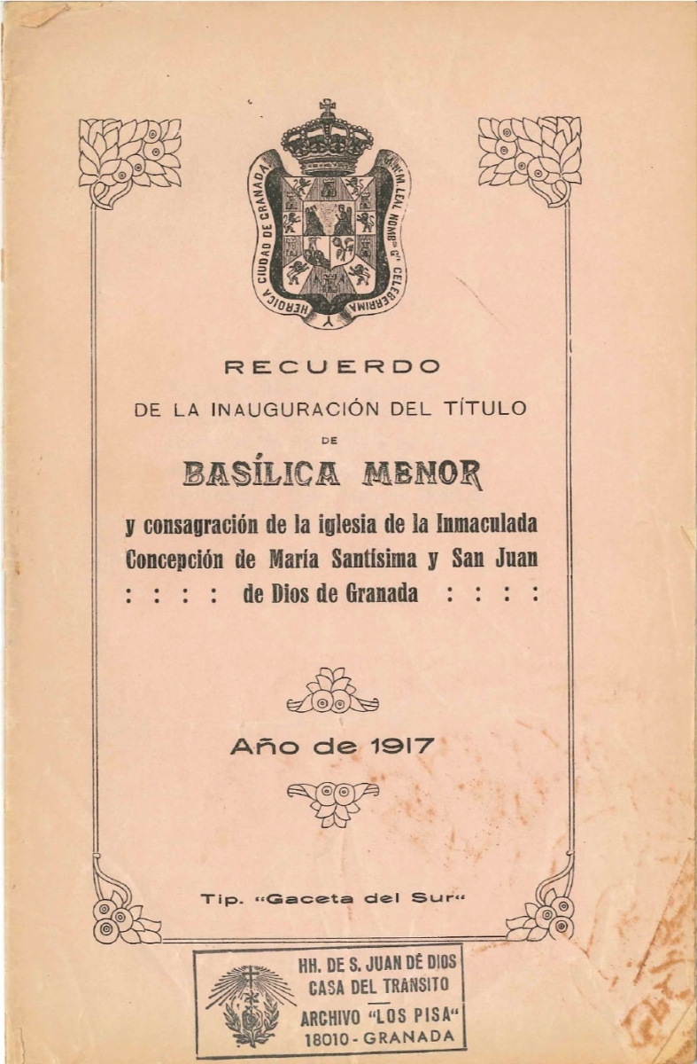 En la sacristía puede contemplarse el Breve mediante el que el Papa Benedicto XV concedió la condición de Basílica Menor a la Iglesia de la Inmaculada y San Juan de Dios de Granada en 1916, además de otros documentos históricos del momento.