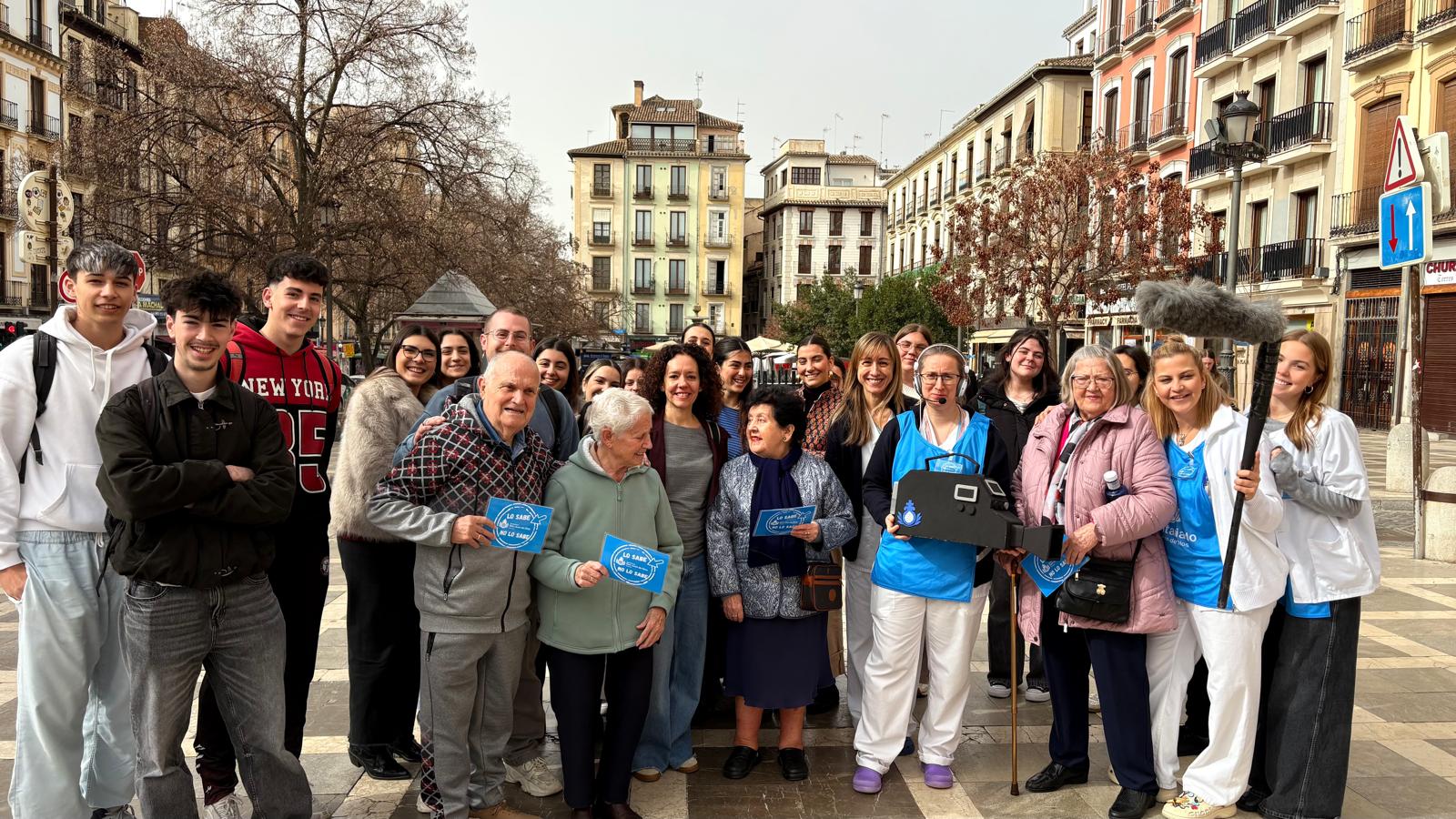 Los mayores de la Residencia de Mayores San Juan de Dios se han convertido en reporteros estos días con motivo de la celebración de la festividad del Santo, -y copatrón de Granada- el próximo 8 de marzo. Para ello, un grupo de mayores acompañados del voluntariado de la Orden Hospitalaria y un grupo de profesionales del Centro han salido a Plaza Nueva, justo al lado de la Residencia, para averiguar qué conocen los granadinos sobre la vida y legado de San Juan de Dios, y contar su historia a los viandantes. Una iniciativa que ha sido acogida con mucho cariño por los transeúntes, que no han dudado en conversar y participar con los mayores, y que, además, va enmarcada dentro del trabajo terapéutico del Centro con los residentes para trabajar con ellos la interacción social e intergeneracional, la orientación en el tiempo, la expresión verbal y la actividad física.